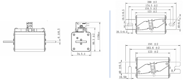Description: It is used for short circuit protection of energy storage device, UPS center, charging system, inverter, charging pile. This series of fuses are cured by the world’s most advanced curing technology, which effectively improves the vibration resistance and high current breaking ability.